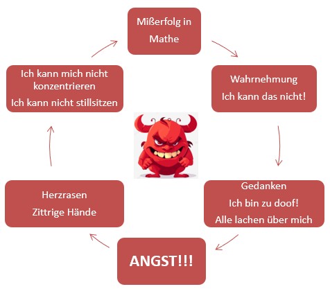 Bei Kindern mit starker Misserfolgserwartung, die nahezu jedes Selbstvertrauen in ihre eigenen Fähigkeiten verloren haben, ist es sinnvoll die Tür zur Lernbereitschaft vorab mit psychotherapeutischen Mitteln wieder ein wenig zu öffnen. Die Erfahrung zeigt, dass sich dafür gut ein Gespräch über den Teufelskreis der Angst eignet. Die meisten Kinder finden sich darin wieder und erkennen, wie sich so ein Kreislauf selbst aufrechterhält.
